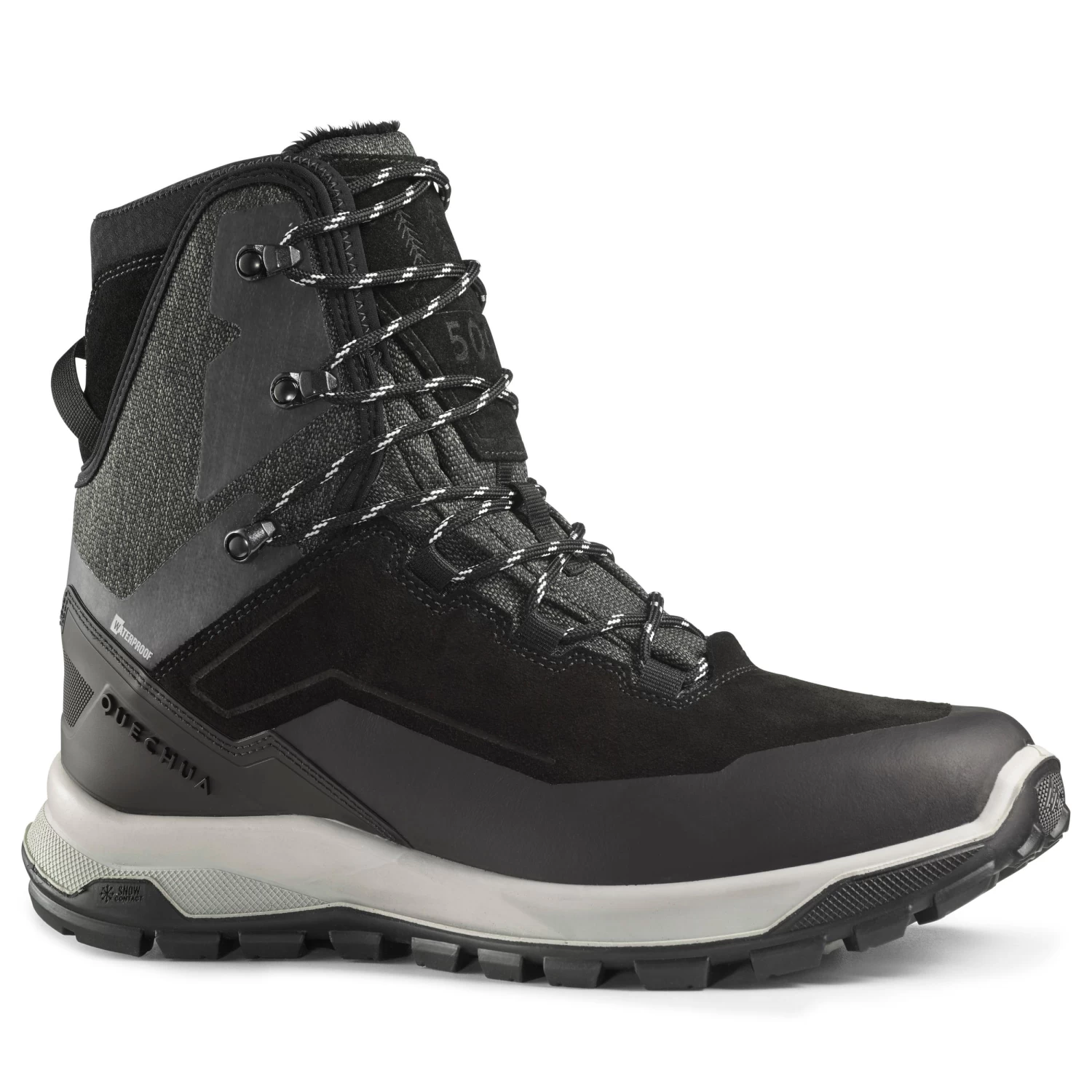 SNOWCONTACT soles are made with a specific component and stud pattern that is designed to ensure the best possible grip and traction. SNOWCONTACT soles are more effective than traditional soles on snow. When walking on ice, the only way to ensure optimum safety is to add anti-slip grips to your boots.